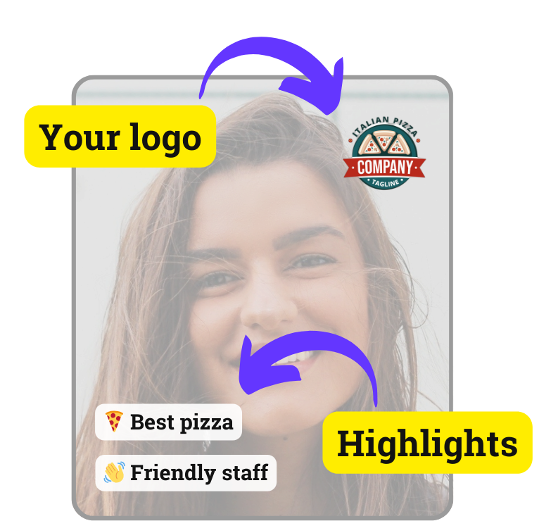- Add your branding to videos to make them yours.